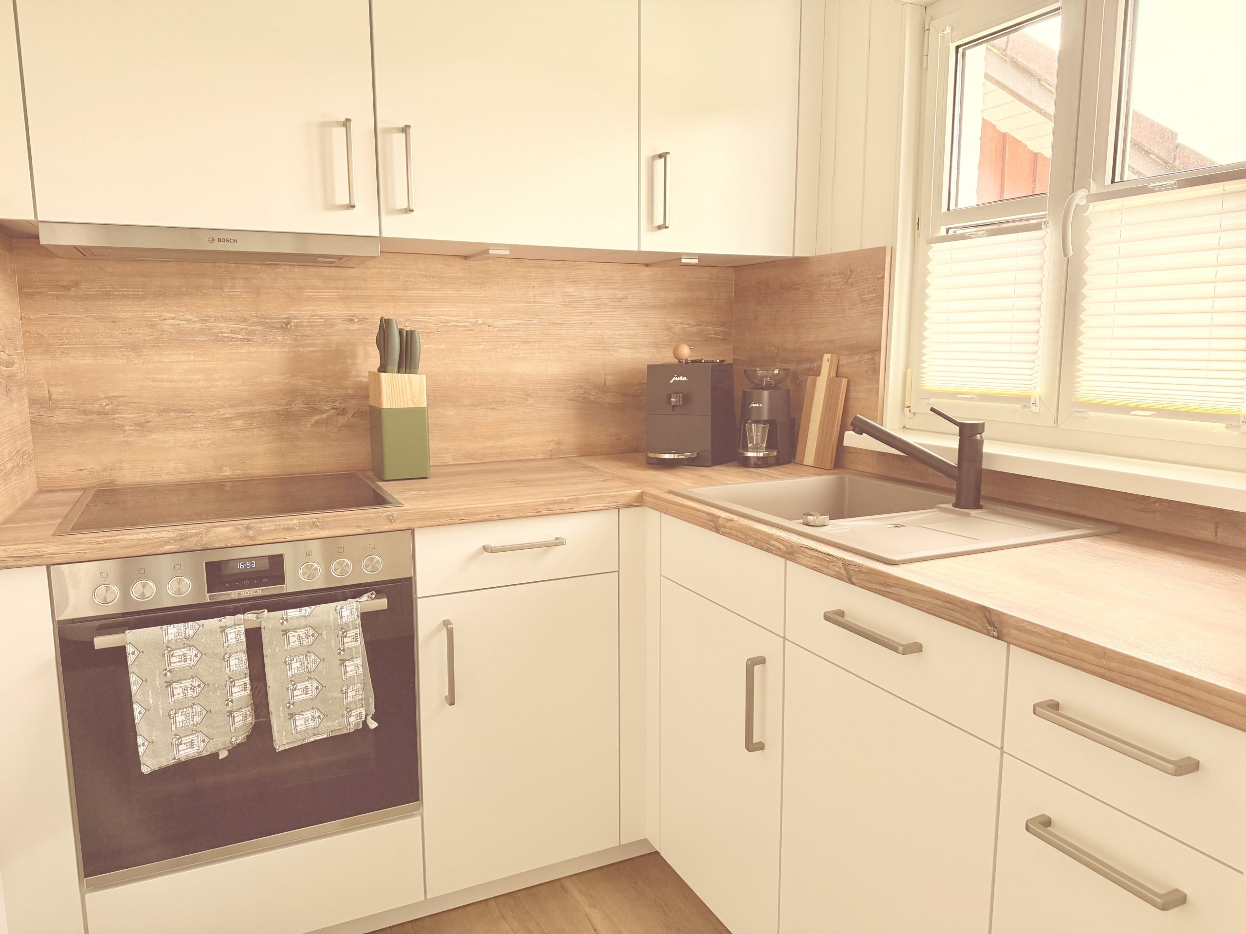 Die kleine, separate Küche ist voll ausgestattet und lässt beim Kochen keine Wünsche offen. Das moderne Badezimmer wurde komplett neugestaltet – schlicht, stilvoll und funktional.